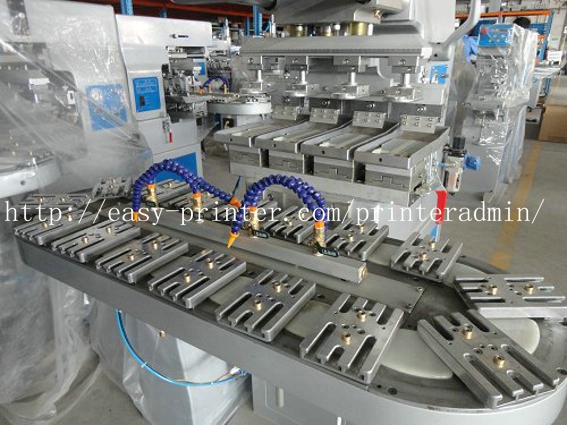 配置有16个独立工位的转盘类型的移印机,一次可以安放16个产品供移印,节省了移印的准备时间和取放工件的时间,生产效率有显着提高。