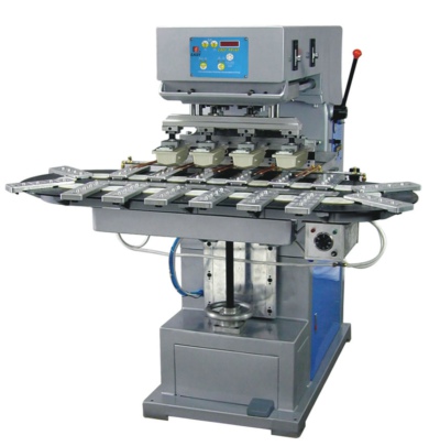 转盘移印机是目前相对自动化程度高的移印机,套印准确,操作方便, 维修保养简单易行, 广泛应用于电子,塑胶,玩具,礼品,工艺品,家用电器,瓶盖,办公用品,汽车部件的四色移印加工。