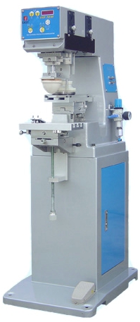 是可以放置在地面上的单色移印机,占地面积小,操作简便,价格低廉,还可以降低员工的劳动强度;