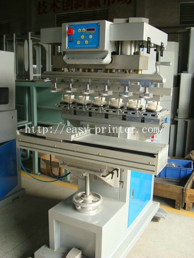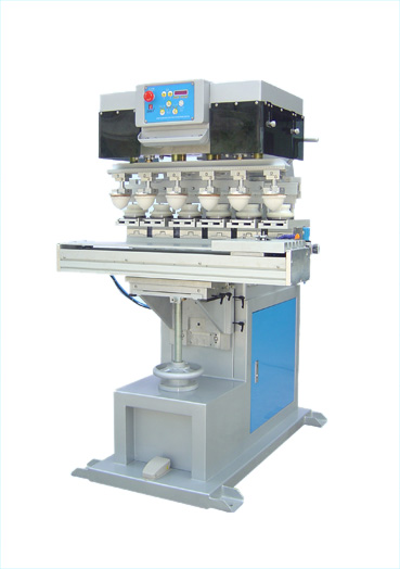 转盘移印机是目前相对自动化程度高的移印机,套印准确,操作方便, 维修保养简单易行, 广泛应用于电子,塑胶,玩具,礼品,工艺品,家用电器,瓶盖,办公用品,汽车部件的六色移印加工。