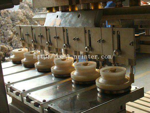配置有6个独立工位的穿梭类型的移印机,一次可以安放1个产品供移印,套印精度高。
