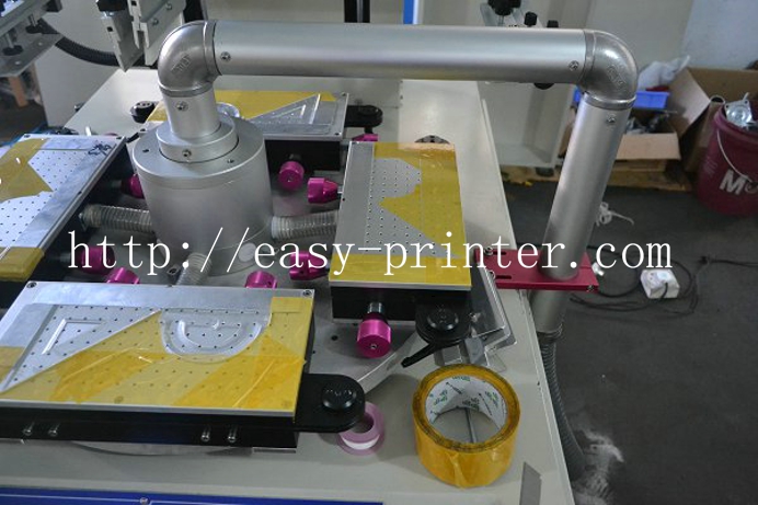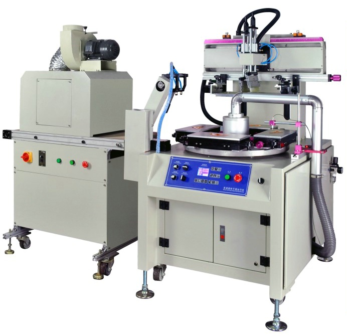 这是一款高速高精度自动印尺丝印机,采用台湾机械式凸轮分割器组建高速旋转台,可高速转动没有任何震动,人工上料,机械手自动下料,在印刷的同时可取放工件,减少设备停止的时间,最快速度可达2500次/小时,主要适用于直尺,等边三角尺,长三角尺,量角尺等文具类产品大批量丝印。