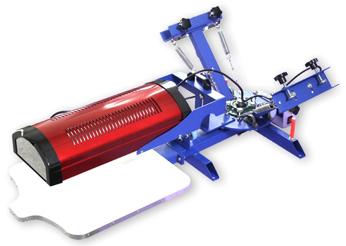 这款双色一工位自带烘干一体机丝网印刷机则能够比较好的解决这个问题。